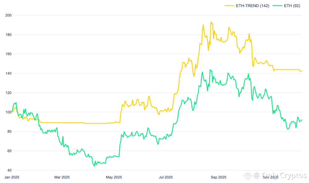 ETH has had three prominent phases in 2025: A Q1 breakdown, a Q2-Q3 powerhouse rally, and the heartbreaking Q4 drawdown. We applied a systematic trend strategy (live since Oct 2023) following ETI to ETH and the results are startling.