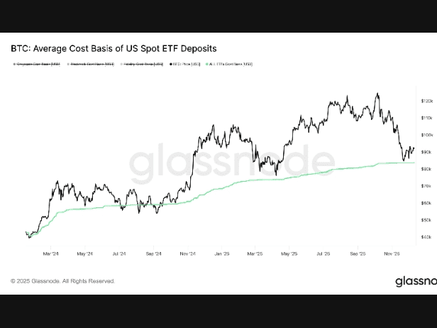 Il prezzo è sceso vicino al livello di 80000 prima di trovare un forte supporto. Da allora, Bitcoin è risalito sopra 90000, segnando un recupero di quasi il 15 percento dal minimo del 21 novembre. Questo rimbalzo non è casuale. È avvenuto in una zona in cui si incontrano diversi importanti indicatori di mercato. Questo rende l'area bassa di 80000 una regione di supporto chiave per l'attuale ciclo di mercato.