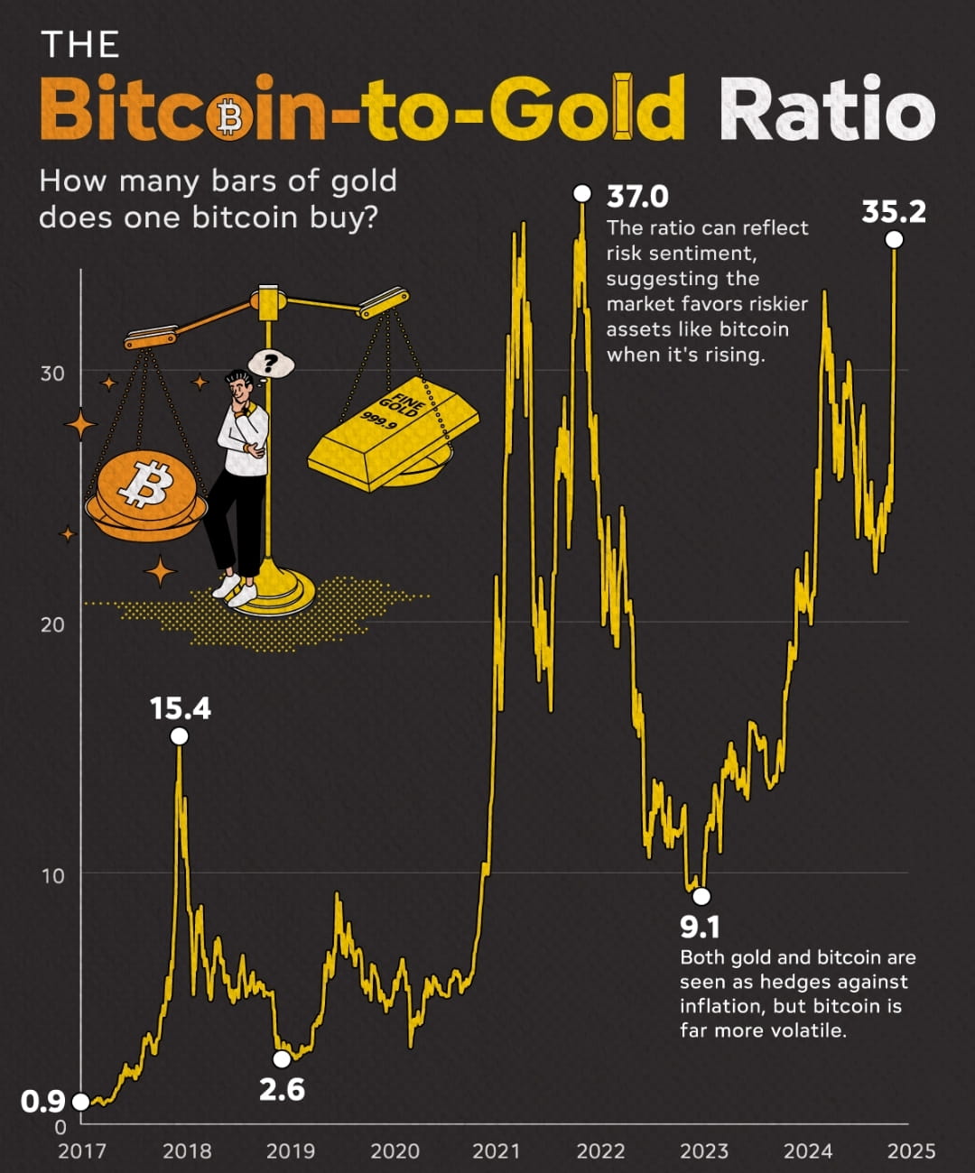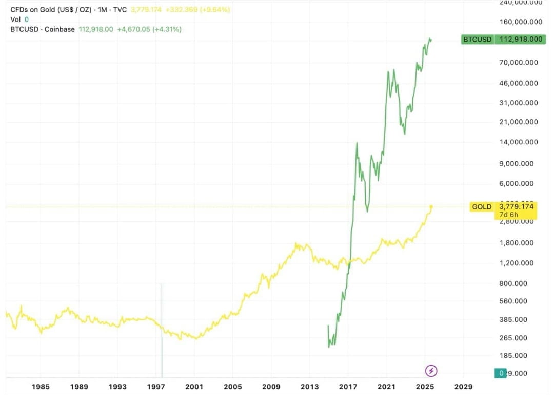 L'oro attualmente guida come il più stabile deposito di valore e rifugio sicuro nel 2025. Il Bitcoin mantiene ancora un maggiore potenziale di crescita a lungo termine ma rimane più volatile e dipendente dal rischio.