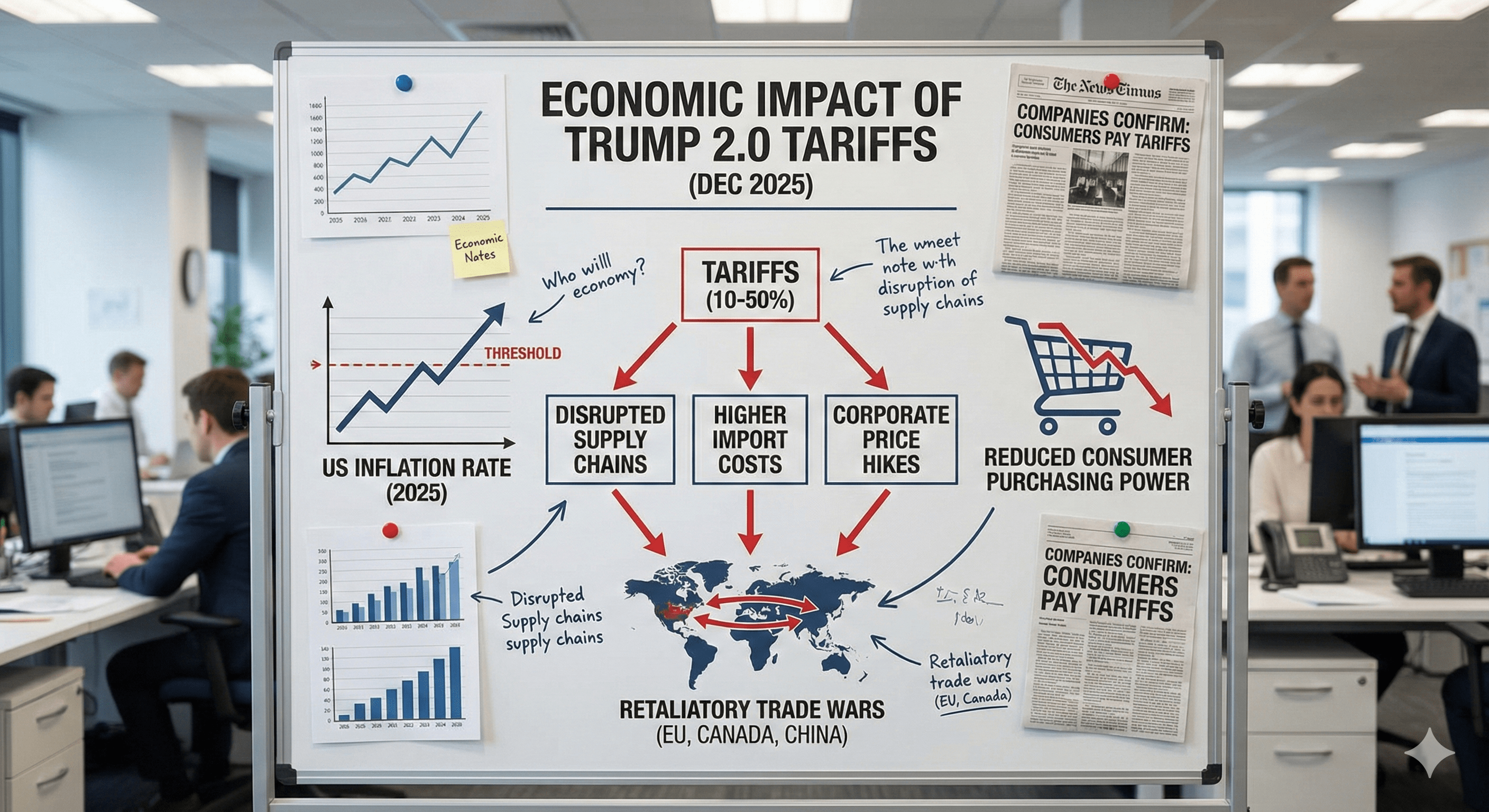 * Inflazione: Economisti e rapporti aziendali indicano che queste ampie tariffe funzionano come una tassa sugli importatori statunitensi, che stanno aumentando i prezzi. Questo ha mantenuto l'inflazione più alta del previsto per la fine del 2025.