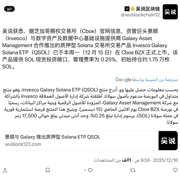 Potrebbero seguire altri prodotti legati a Solana. Se la domanda continua, altri gestori potrebbero esplorare strutture di conservazione simili. Attualmente, QSOL è uno dei ponti più chiari tra la finanza tradizionale e l'economia di Solana sulla rete. In breve, non si tratta solo di un'altra quotazione, ma di un segnale che Solana sta entrando in una fase più matura nei mercati globali.