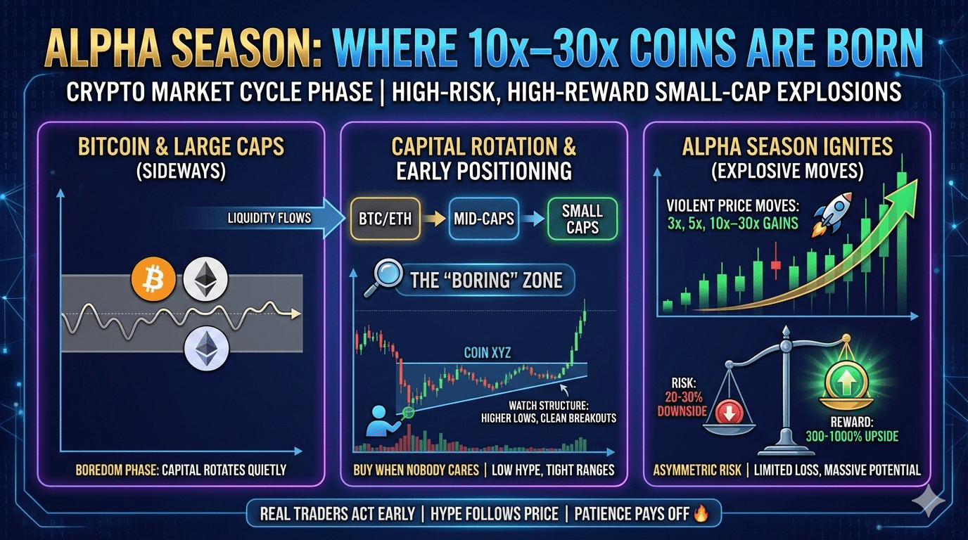 La Stagione Alpha è la parte del ciclo crypto in cui si fanno soldi veri. Mentre Bitcoin ed Ethereum si muovono lateralmente e annoiano tutti a morte, le monete a bassa capitalizzazione esplodono.