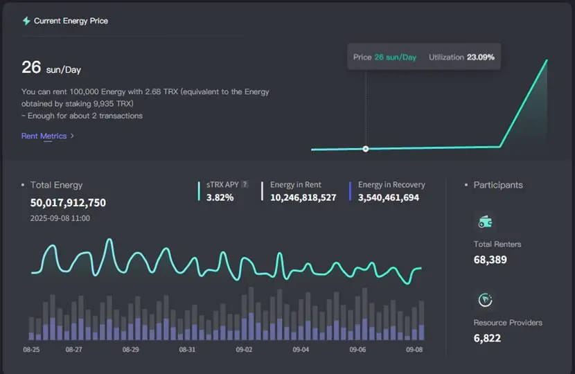 Doppia ricompensa: Facendo staking di TRX, gli utenti possono ottenere rendimenti aggiuntivi per votazione e affitto di energia, raggiungendo APY vicino al 9.14%.