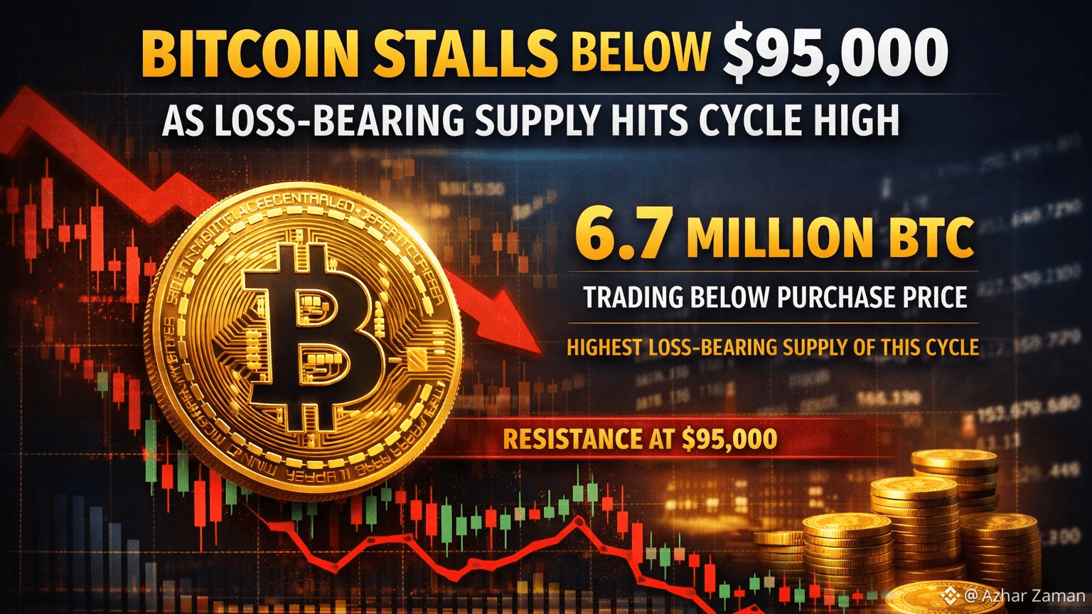 Il Bitcoin (BTC) continua a negoziare al di sotto del livello chiave di $95,000, mostrando segni di consolidamento mentre i dati on-chain indicano un aumento delle perdite non realizzate tra i partecipanti al mercato.