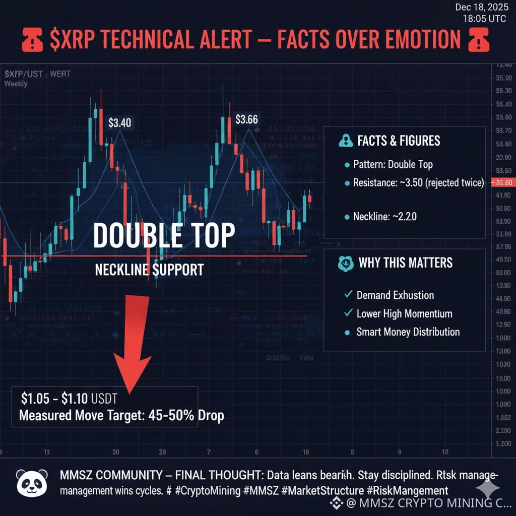 Legendary commodity & crypto trader Peter Brandt has flagged a potential Double Top structure on the weekly XRP chart — a pattern with a historical failure rate that traders cannot ignore.