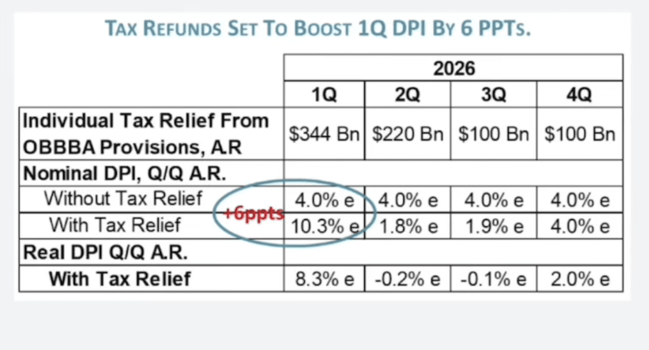 Inoltre, nel 2026 Q1 ci sarà un'ondata di rimborsi fiscali negli Stati Uniti, che secondo le statistiche avrà un impatto positivo sul reddito disponibile del +6% (vedi figura tre), si prevede che stimolerà il consumo e gli investimenti delle persone, il che ovviamente è un buon segnale per il mercato. I dati recentemente pubblicati hanno iniziato a mostrare segni di raffreddamento dell'inflazione, e nelle indagini tra le imprese, gli analisti professionisti hanno anche scoperto che i costi aziendali e l'inflazione dei salari dei dipendenti stanno iniziando a diminuire (come mostrato nella figura quattro), questo segnale rafforzerà notevolmente il numero di riduzioni dei tassi di interesse dell'anno prossimo, attualmente le istituzioni si aspettano generalmente due riduzioni l'anno prossimo, ma la probabilità di quattro riduzioni sta crescendo sempre di più (riduzione dal 1% al 2,5%).