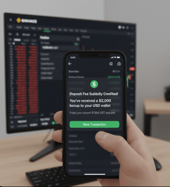 D'altra parte, Binance mi ha appena colpito con un sussidio per le commissioni di deposito di $2.000 dopo circa 8 ore. Le piccole vittorie contano quando giochi con i grandi pesci! 🐟💨