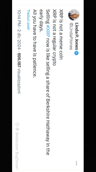 $XRP Linda P. Jones, analista di Wall Street, ha sottolineato il potenziale a lungo termine di XRP paragonando le sue attuali prestazioni a quelle delle azioni di Berkshire Hathaway nei primi anni.