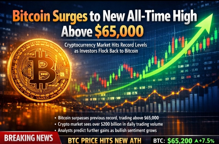 #bitcoin è aumentato a un nuovo massimo storico, scambiando sopra $65,000 mentre una forte domanda da parte degli investitori torna sul mercato.