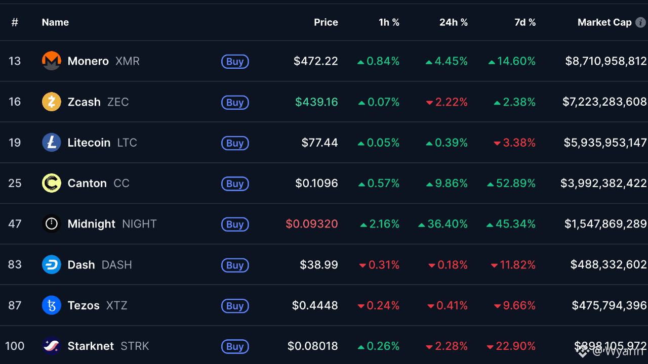 Le privacy coin sono ora posizionate come: