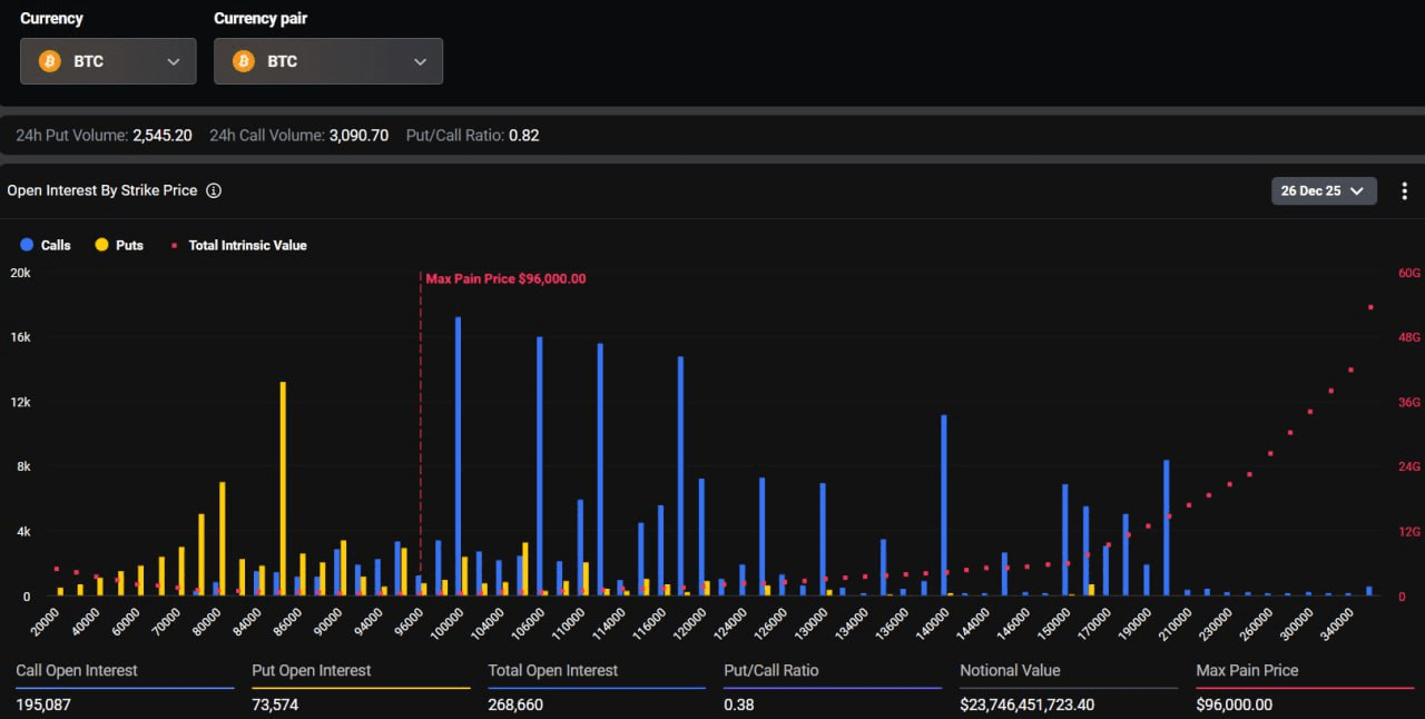 Il 26 dicembre, scadranno opzioni Bitcoin per un valore di circa 23,7 miliardi di dollari, la più grande del 2025. Circa 268.000 contratti scadranno tutti insieme, e questo da solo è sufficiente a scuotere il prezzo anche se le notizie sono completamente silenziose.