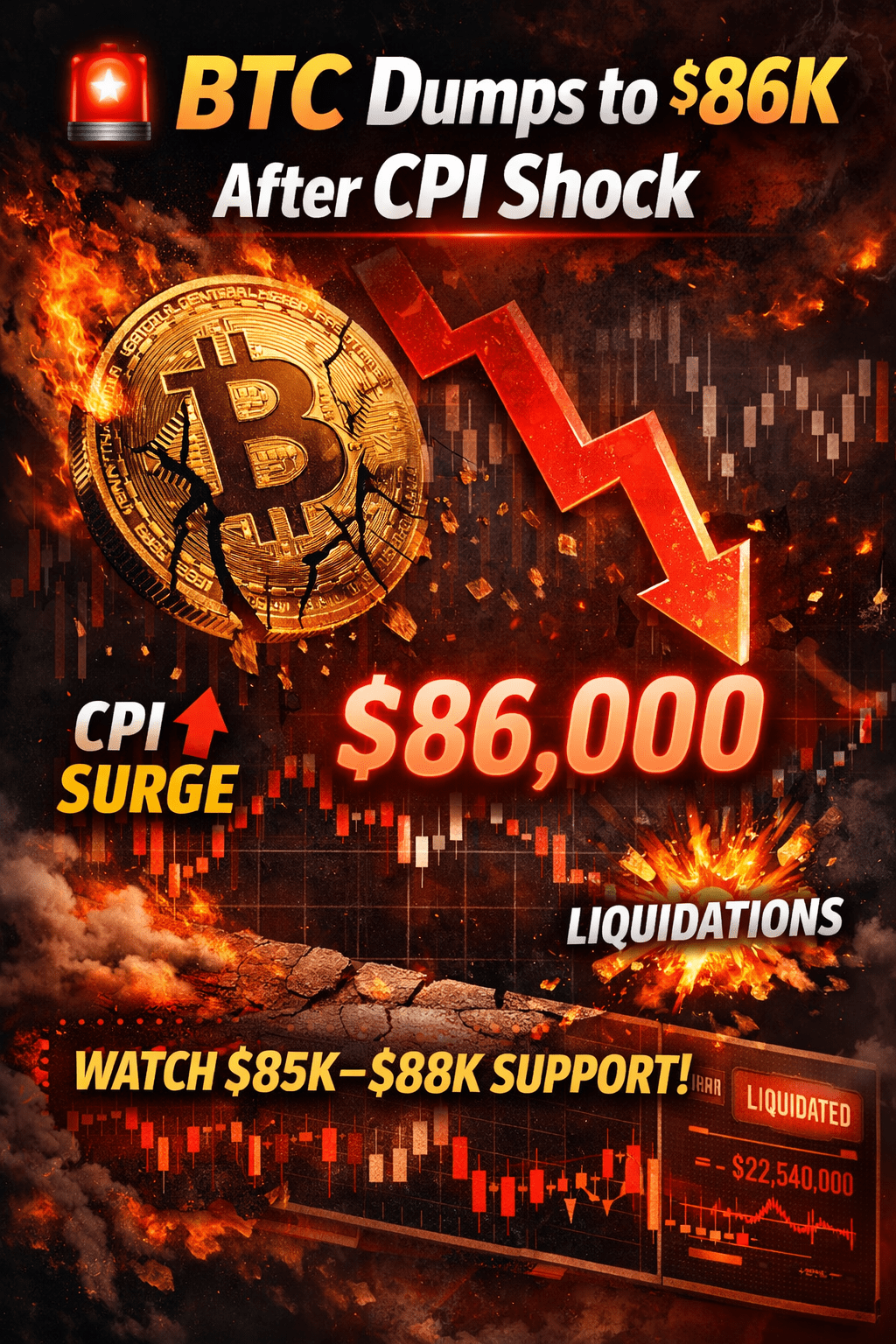 Bitcoin è crollato a $86K dopo che un CPI caldo ha scosso il mercato 📉