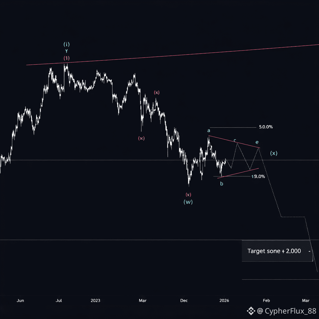 🐻 Bearish Outlook: A drop below triangle support may confirm continuation of the correction toward the $2,000 zone.