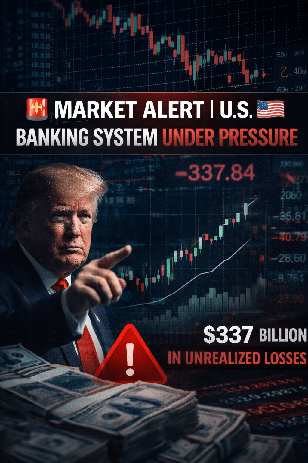Le banche statunitensi stanno attualmente accumulando quasi $337 miliardi in perdite non realizzate, un punto di pressione silenzioso ma serio nel sistema finanziario. Queste perdite non compaiono nei titoli quotidiani perché rimangono nei bilanci, ma riflettono il forte impatto di tassi di interesse elevati prolungati.$TRUMP