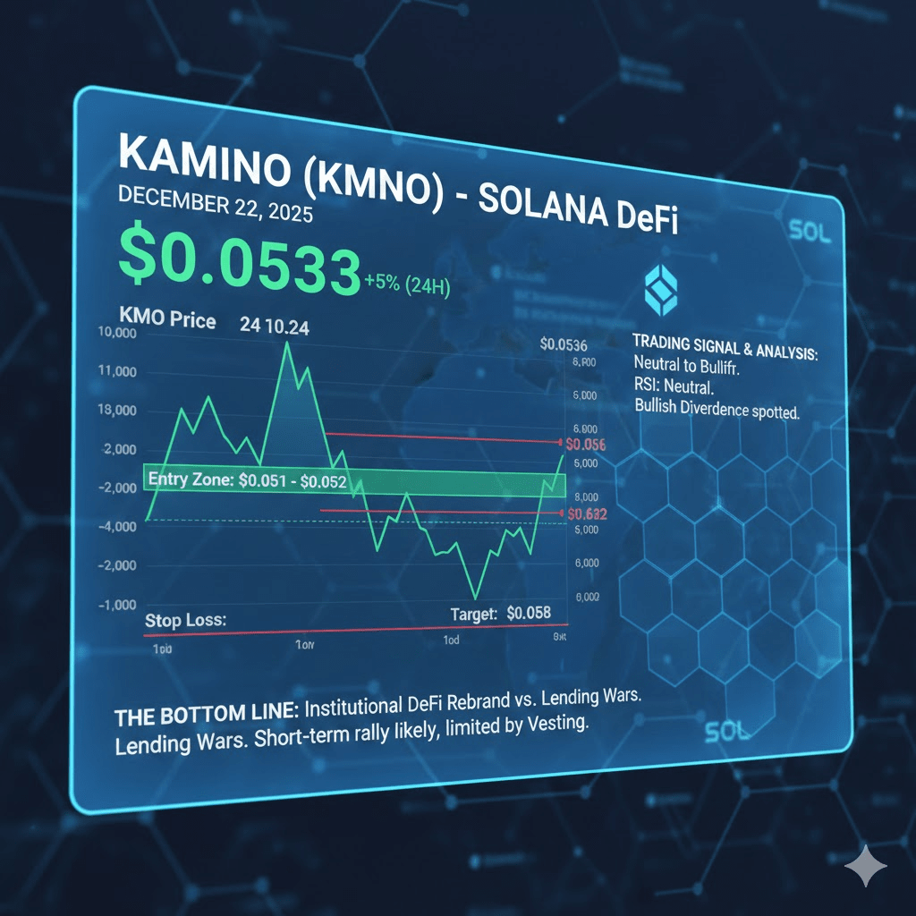 Oggi, 22 dicembre 2025, Kamino (KMNO) sta navigando in un periodo di consolidamento all'interno dell'ecosistema Solana DeFi. Il token attualmente viene scambiato intorno a $0.0533, riflettendo una ripresa resiliente di circa il 5% nelle ultime 24 ore.