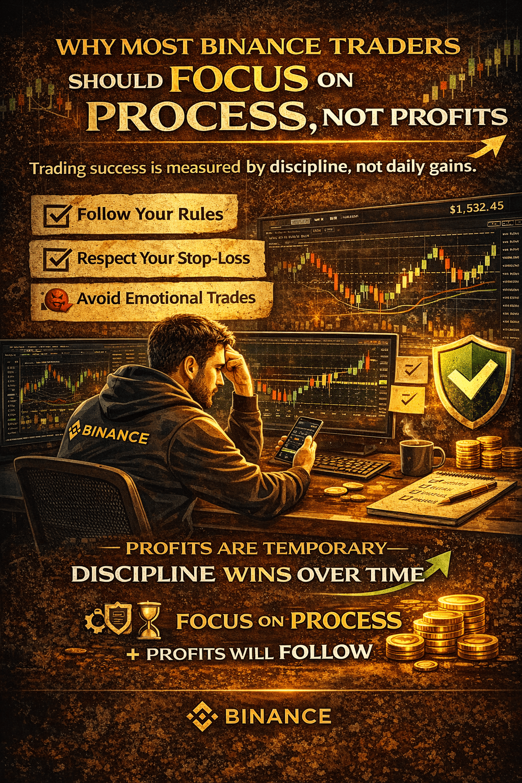 La maggior parte dei trader$BNB è ossessionata da quanto hanno guadagnato oggi. Gli utenti professionali di Binance si concentrano su quanto bene hanno seguito le loro regole. Questo cambiamento di mentalità è raramente discusso—ma è ciò che separa i trader coerenti da quelli fortunati.$BTC