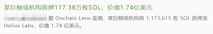 Amici delle criptovalute, oggi il mercato di SOL è interessante! La linea dell'ora sta ancora scendendo, ma poco fa è emersa un'operazione incredibile sulla blockchain: un misterioso grande balena ha pledgeato 117.36 milioni di SOL in un colpo solo, per un valore di 1.74 milioni di dollari! È per rilassarsi o prepararsi a grandi eventi? Sono Zhou Yi, e ti porterò a scoprire la verità dietro le candele.