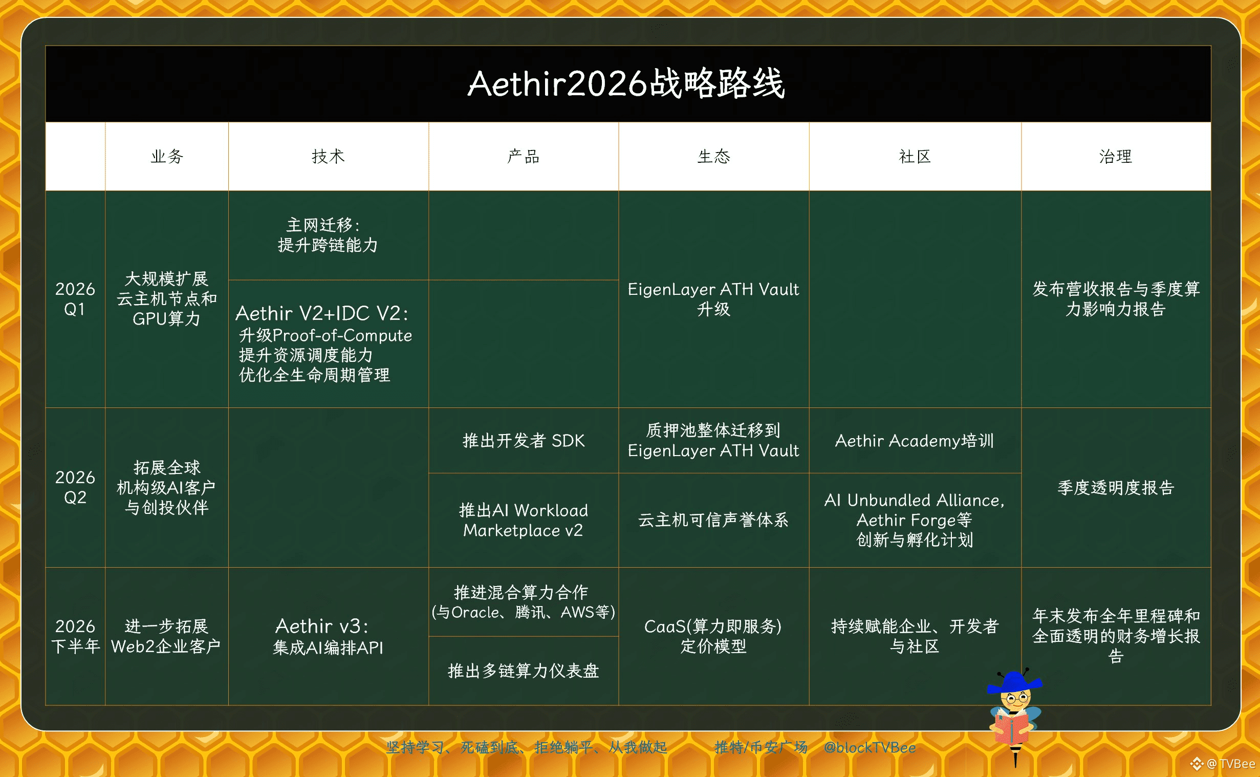 在社区方面,Aethir在2026年针继续进行学术培训,AI算力相关的创新与孵化,持续赋能企业、开发者与社区。