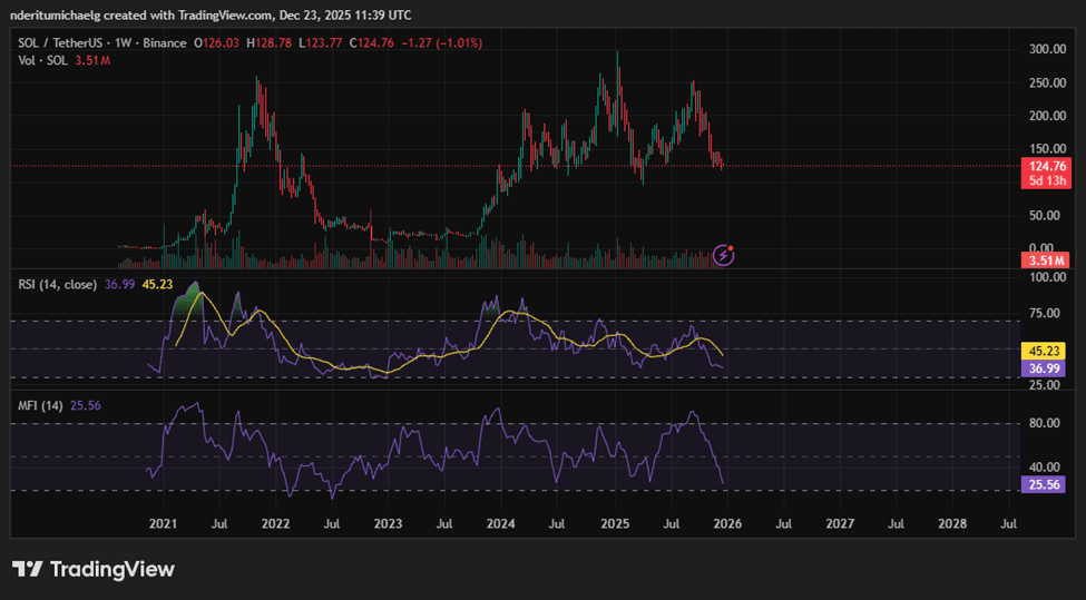 Il prezzo di SOL ha inizialmente iniziato l'anno con un piede rialzista, che era così promettente che a gennaio di quest'anno la moneta ha raggiunto il massimo storico di 295 dollari. Tuttavia, le azioni sui prezzi orso nella seconda metà del 2025 hanno annullato questo guadagno.