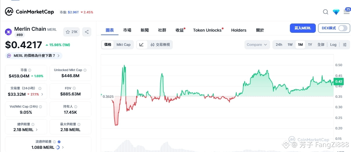 $MERL 短線衝高 0.44 USDT、市值擠進前百,表面看著強勢,但細看成交量,這顯然是低流動性下的「人造反彈」。在 12 月中下旬(12/12-19) 7,000 萬枚大額解鎖的預期下,目前的拉升更像是為了給後續供給釋放騰出操作空間,而非趨勢反轉。