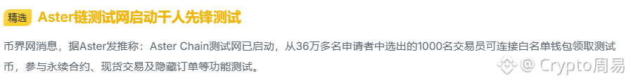 Aster Chain测试网上线,千人先锋队领测试币刷现货和合约,短期确实能拉点热度。但别忘了,测试币都是虚的,不产生真实收益,一旦热度消退,抛压可能如山倒。这种消息往往被庄家利用来拉高出货,玩家跟风就是送人头!