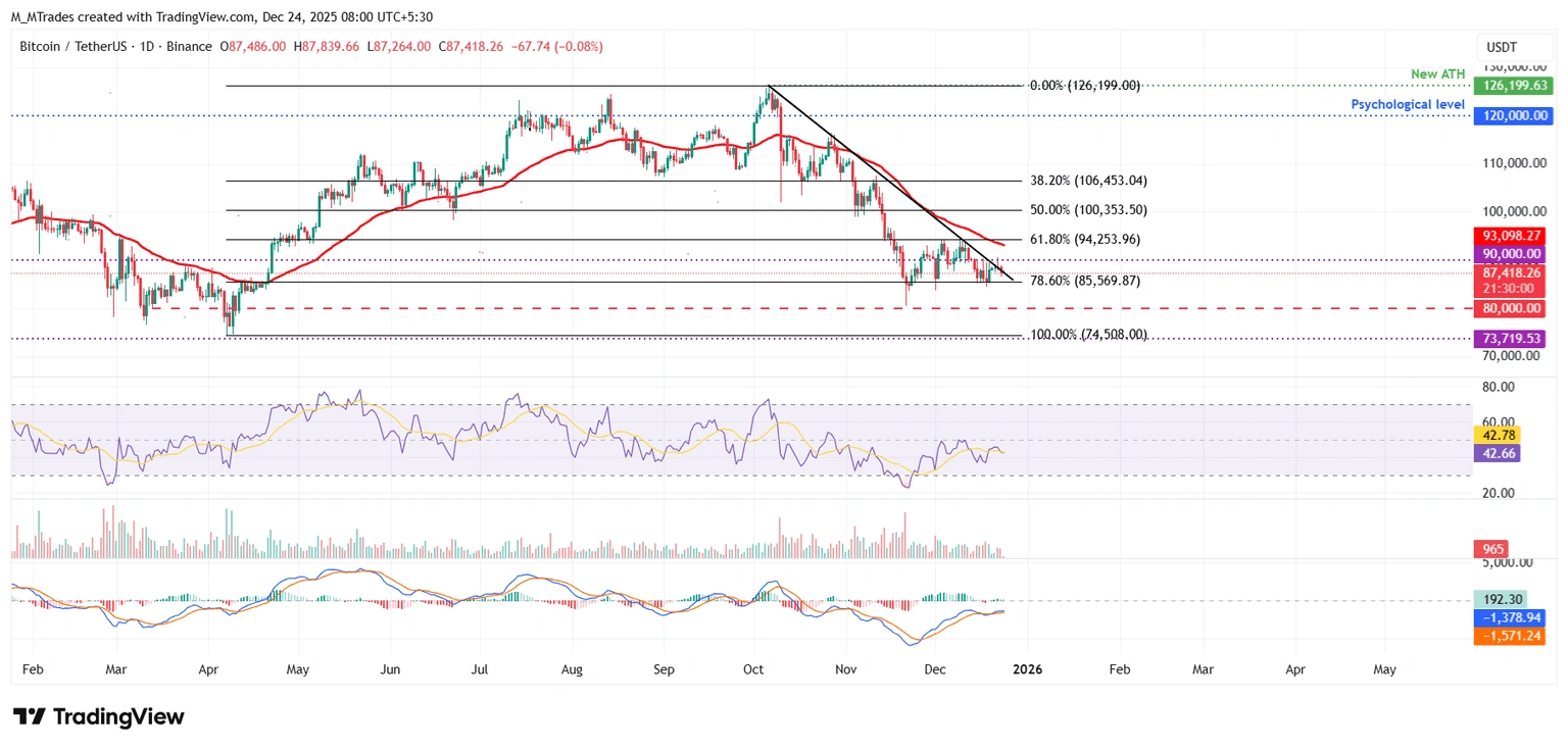Bitcoin si aggira intorno ai $87,400 mercoledì dopo aver fallito nel garantire un breakout sopra la resistenza di $90,000. Ethereum scivola sotto $3,000 dopo essere stato respinto al suo livello di resistenza giornaliero di $3,017. XRP scambia intorno a $1.86, scendendo dopo aver fallito nel superare la resistenza chiave vicino a $1.96. Bitcoin (BTC), Ethereum (ETH) e Ripple (XRP) continuano a scambiare in rosso mercoledì mentre i recenti tentativi di breakout perdono slancio vicino ai livelli di resistenza chiave. BTC non è riuscito a riconquistare i $90,000, ETH è scivolato sotto i $3,000, mentre XRP ha affrontato un rifiuto vicino a $1.96. I trader dovrebbero essere cauti poiché le prospettive a breve termine per le prime tre criptovalute rimangono ribassiste.