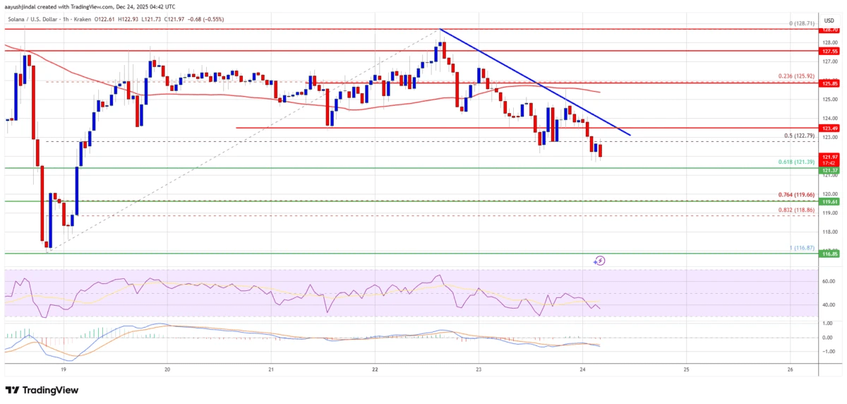 Il prezzo di Solana non è riuscito a superare $130 e ha iniziato una correzione al ribasso, come Bitcoin ed Ethereum. SOL è sceso sotto $126 e $125 per entrare in una zona ribassista a breve termine.