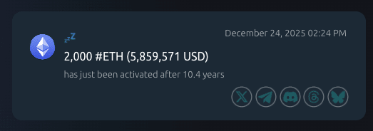 La leggenda dei portafogli decennali è tornata! Un portafoglio ICO che era rimasto inattivo per 10,4 anni ha improvvisamente iniziato a muoversi, 2.000 ETH sono passati da 620 dollari a 5,9 milioni di dollari, con un rendimento del 9435%!