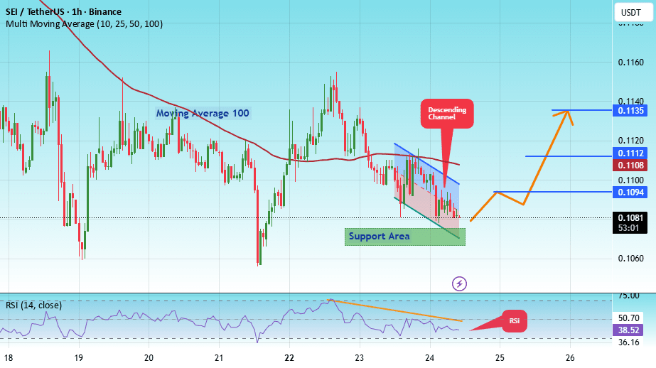 C'è un'area di supporto principale in verde a 0.1071. Il prezzo è rimbalzato da quest'area diverse volte e si prevede che rimbalzi di nuovo.