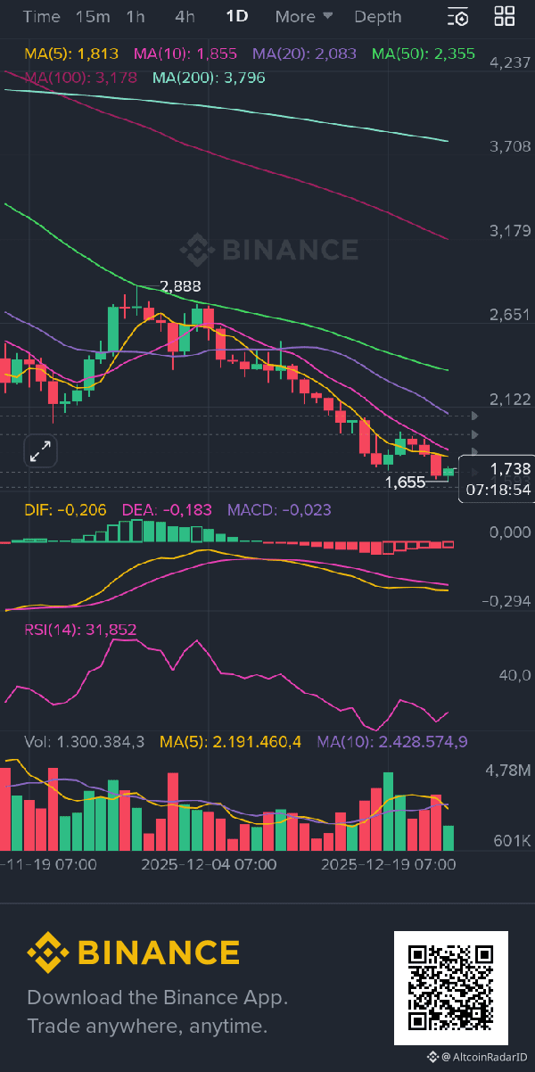 🎯 TP 1 (Konservatif): $1.85 - $1.90 (Peluang: 75% - Target pemulihan jangka pendek).
