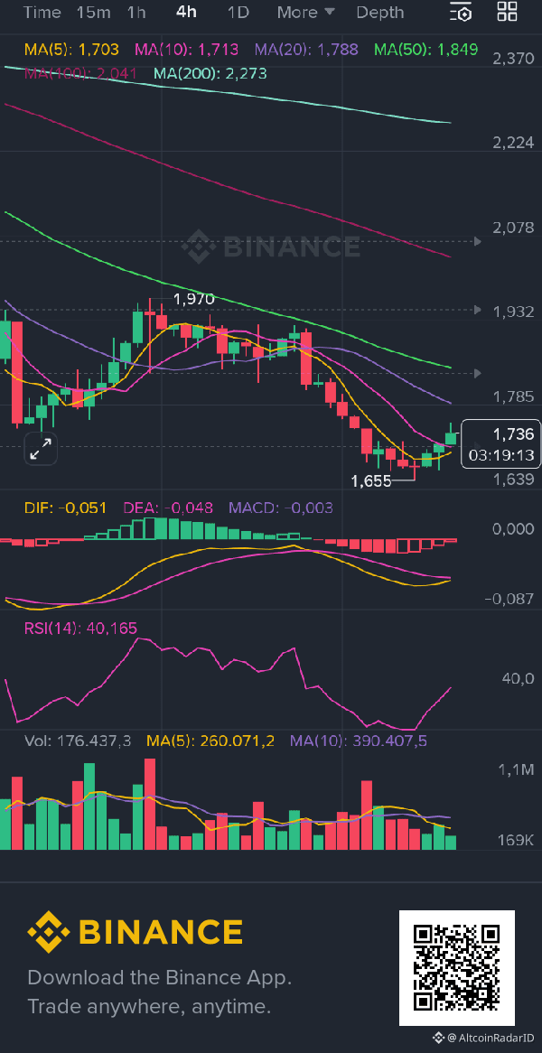 Walaupun tren utama pada TF Harian (1D) masih terlihat Bearish setelah koreksi besar, namun pada TF 4 Jam kita melihat tanda-tanda "Bottoming Out" di area 1.65 - 1.70.