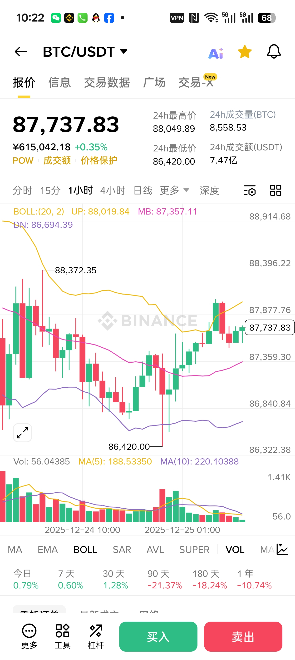 Resistenza pesante: Non limitarti a guardare al rialzo, la pressione di vendita intorno a $88,000 è estremamente pesante. La liquidità è scarsa durante il Natale, senza grandi capitali in entrata, è difficile ottenere risultati immediati.