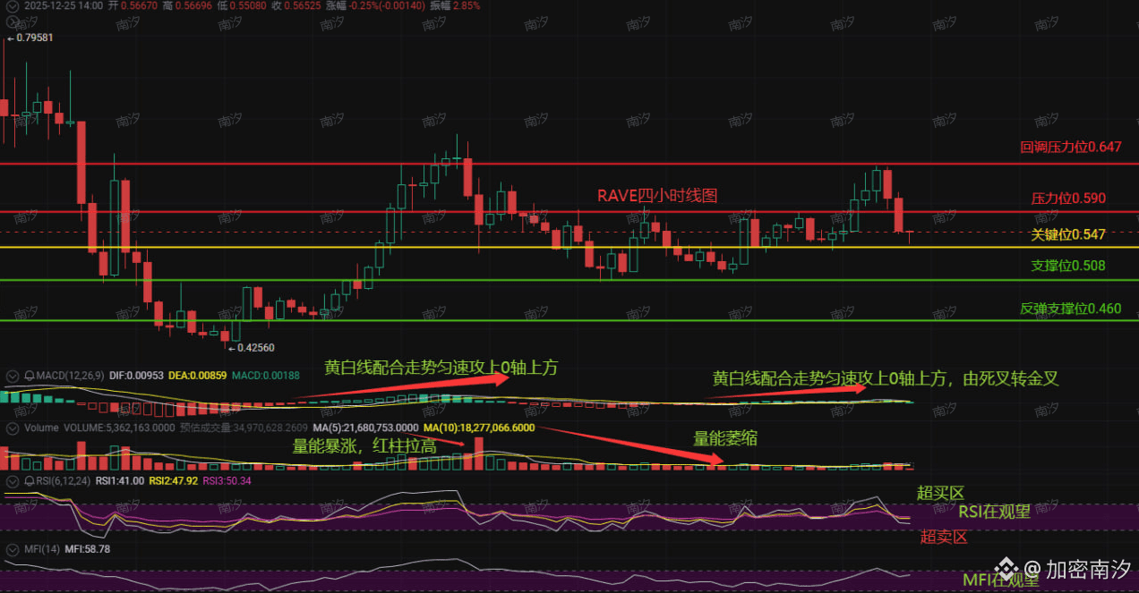 我见过太多人,一看金叉就ALL IN,一看死叉就割肉——结果总是买在高点、卖在低点。为什么?因为你只看指标,不看大势。RAVE现在就是“弱势反弹”,除非放量突破0.647,否则都不算反转。