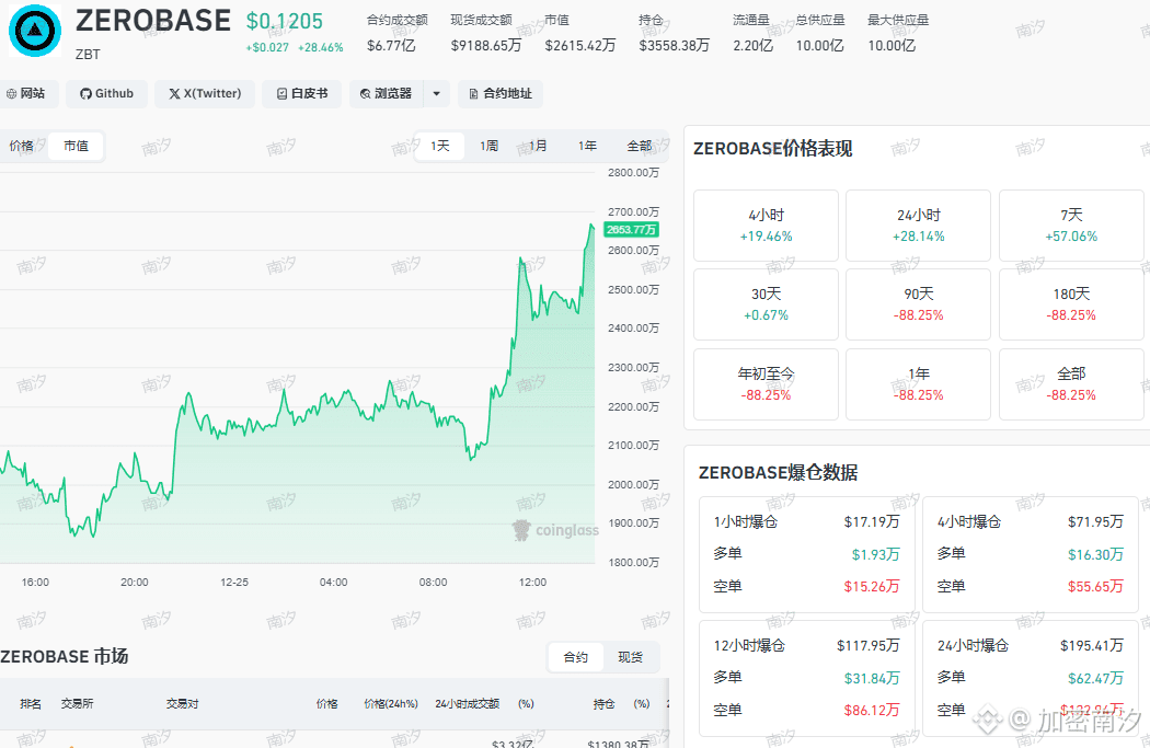 黄白线攻上零轴,爆仓数据暗藏杀机。“南汐,ZBT是不是要起飞了?我0.09没敢进,现在0.12了还能追吗?”——今天群里炸了,无数消息涌进来问同一个币:ZEROBASE的ZBT。