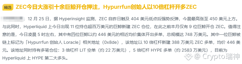 币友们,瑞神上线!$ZEC 今天有大动作——十几头巨鲸集体下场开多,有大哥甚至上了10倍杠杆!消息一出,群里都炸了,是不是马上要起飞了?先别急,让瑞神帮你把把脉。