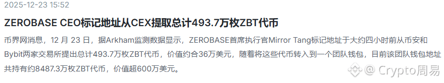 昨天ZEROBASE的CEO自己从币安和Bybit两家所里,一口气提了493.7万枚ZBT,价值36万美元,全部转入团队钱包。这意味着什么?大佬在低位吸筹,而且是真金白银的买! 团队现在手握8487万枚ZBT,价值超600万美元,如果他们不想砸盘,那接下来很可能就是——拉盘。