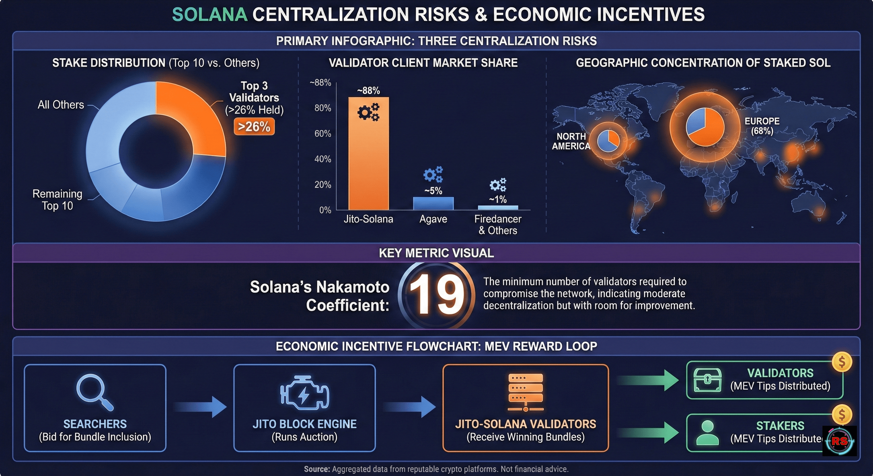 Perché Questo È Importante: Un client è il software che determina come opera un validatore e comunica con la rete. La dipendenza quasi totale da un client crea un rischio sistemico. Un bug critico o uno sfruttamento nel codice Jito-Solana potrebbe minacciare la stabilità e la sicurezza dell'intera rete.