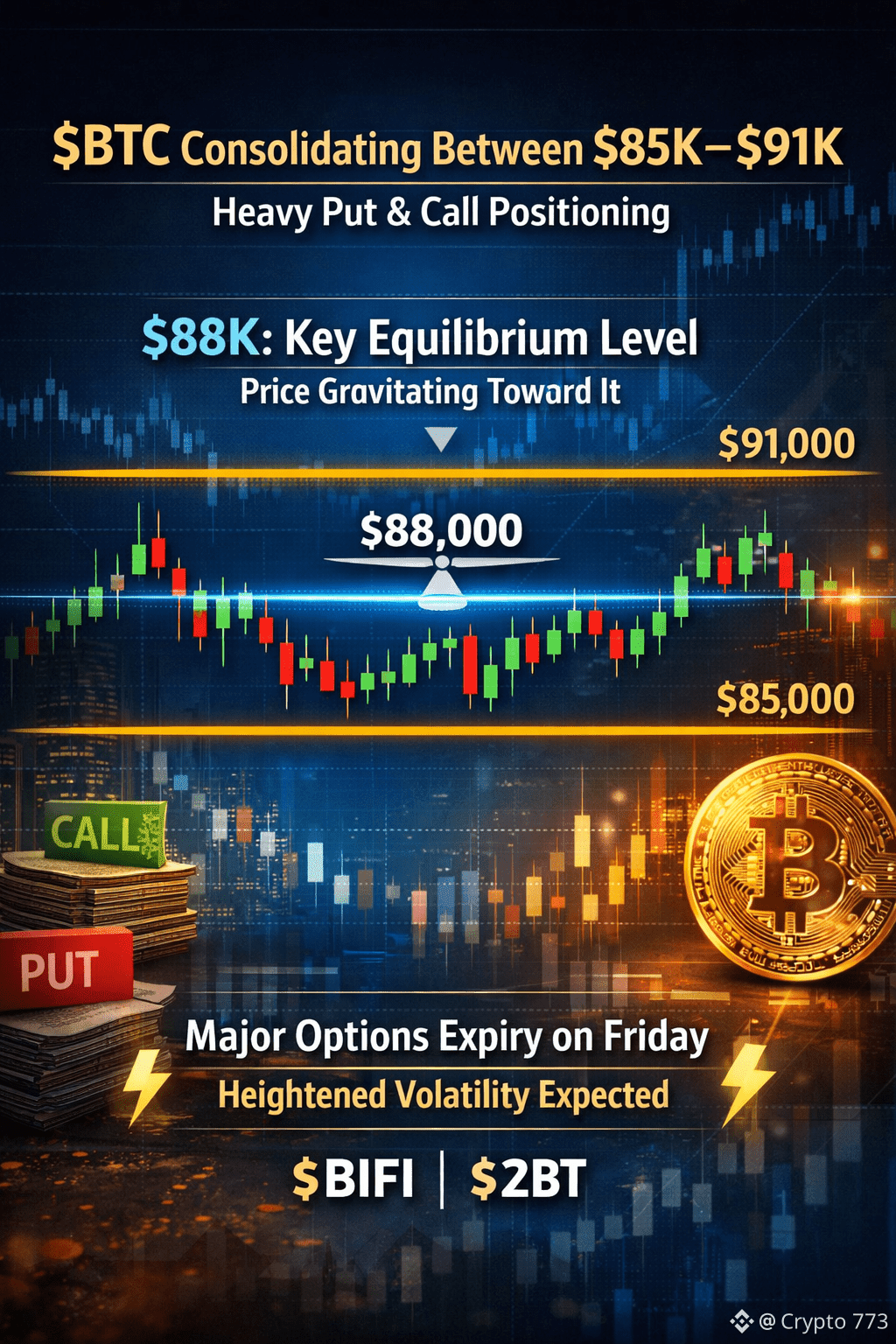 🔥 $BTC consolidating between $85K–$91K amid heavy put and call positioning.