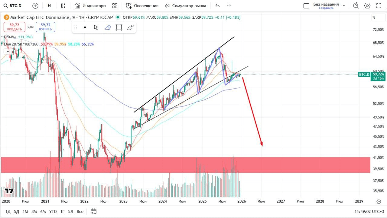 E i massimi del grafico mostrano nel giugno 2025. E questo non è il periodo dell'Altseason. Bitcoin è cresciuto.