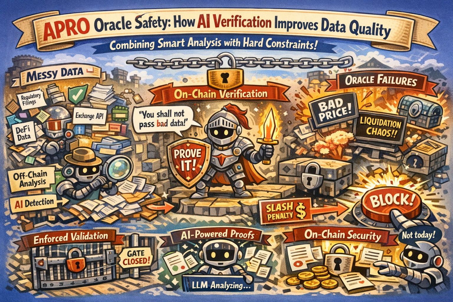 Niente di tutto ciò significa che la verifica AI sia uno scudo magico. I modelli possono reagire eccessivamente, reagire poco o apprendere silenziosamente la base sbagliata. La cornice più sana è che l'AI può allargare la rete—individuare anomalie, leggere input disordinati, far emergere incertezze—mentre il protocollo (e le persone che lo gestiscono) deve comunque decidere cosa accettare come verità. Ecco perché l'approccio di APRO, almeno sulla carta, è più interessante quando abbina analisi “intelligente” con vincoli “duro”: controlli crittografici, registri di verifica auditabili, e penali economiche per comportamenti scorretti. In un mondo in cui un decimale può liquidare qualcuno, il miglior lavoro di sicurezza degli oracle assomiglia molto all'ingegneria dati da adulti: meno dramma, più porte, e meno modi affinché errori silenziosi diventino fatti costosi.