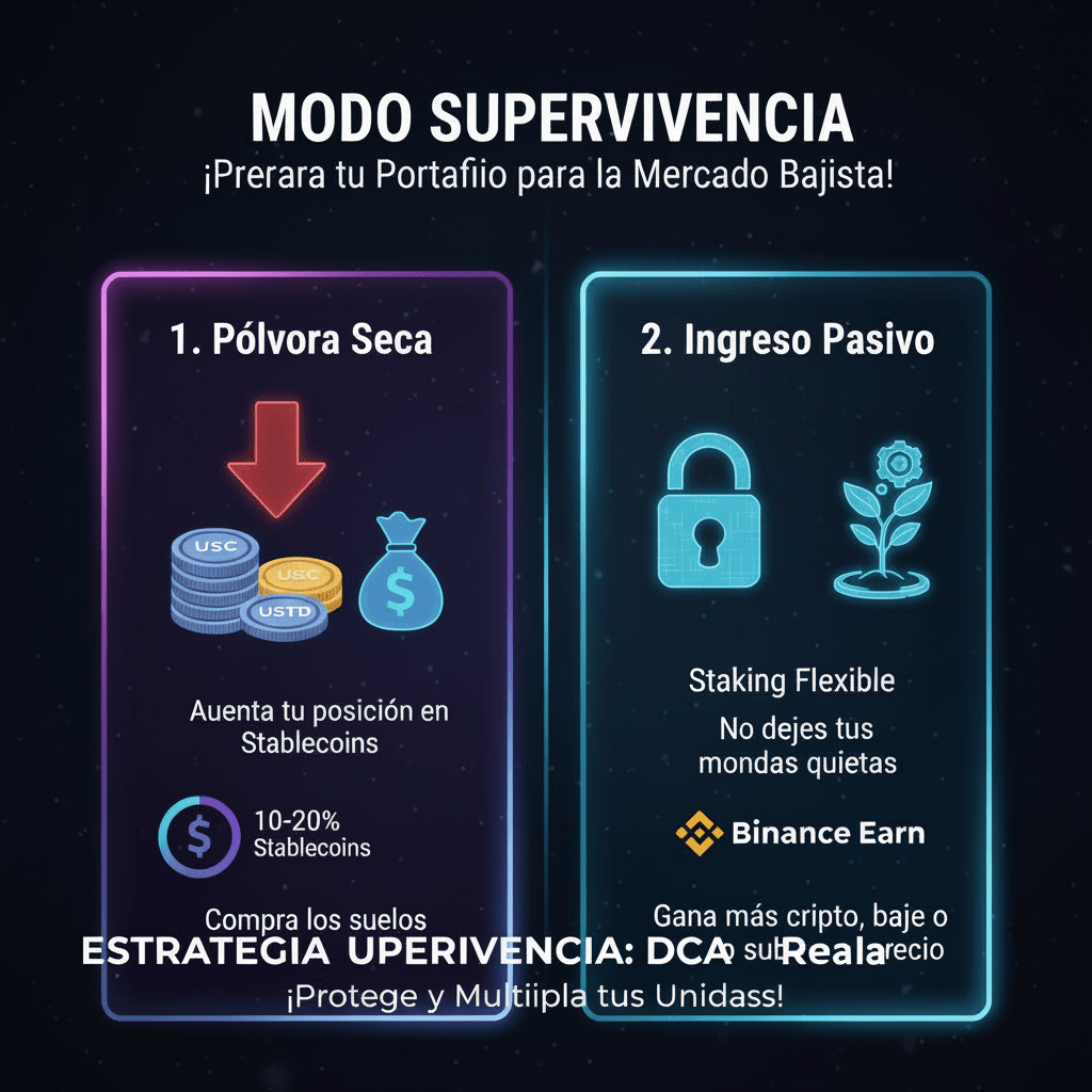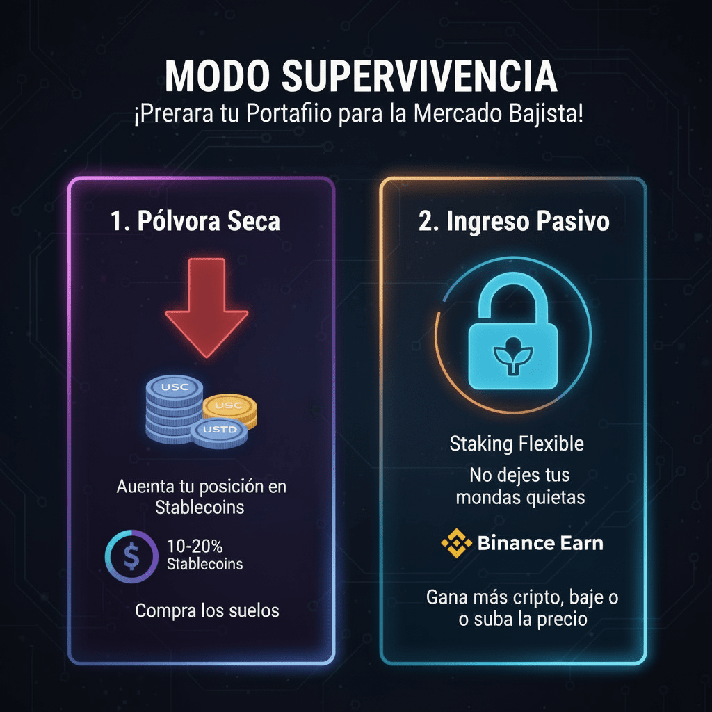 Aumenta la tua posizione in Stablecoins (10-20%): Mantenere USDT o USDC ti dà "polvere secca" per acquistare i fondi.