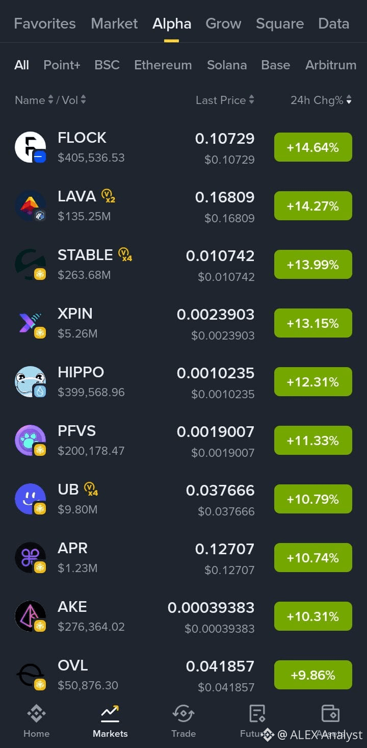 Il mercato Alpha si sta scaldando oggi con diverse monete che mostrano una crescita impressionante! Dai un'occhiata ai leader che stanno facendo grandi progressi nel mercato: