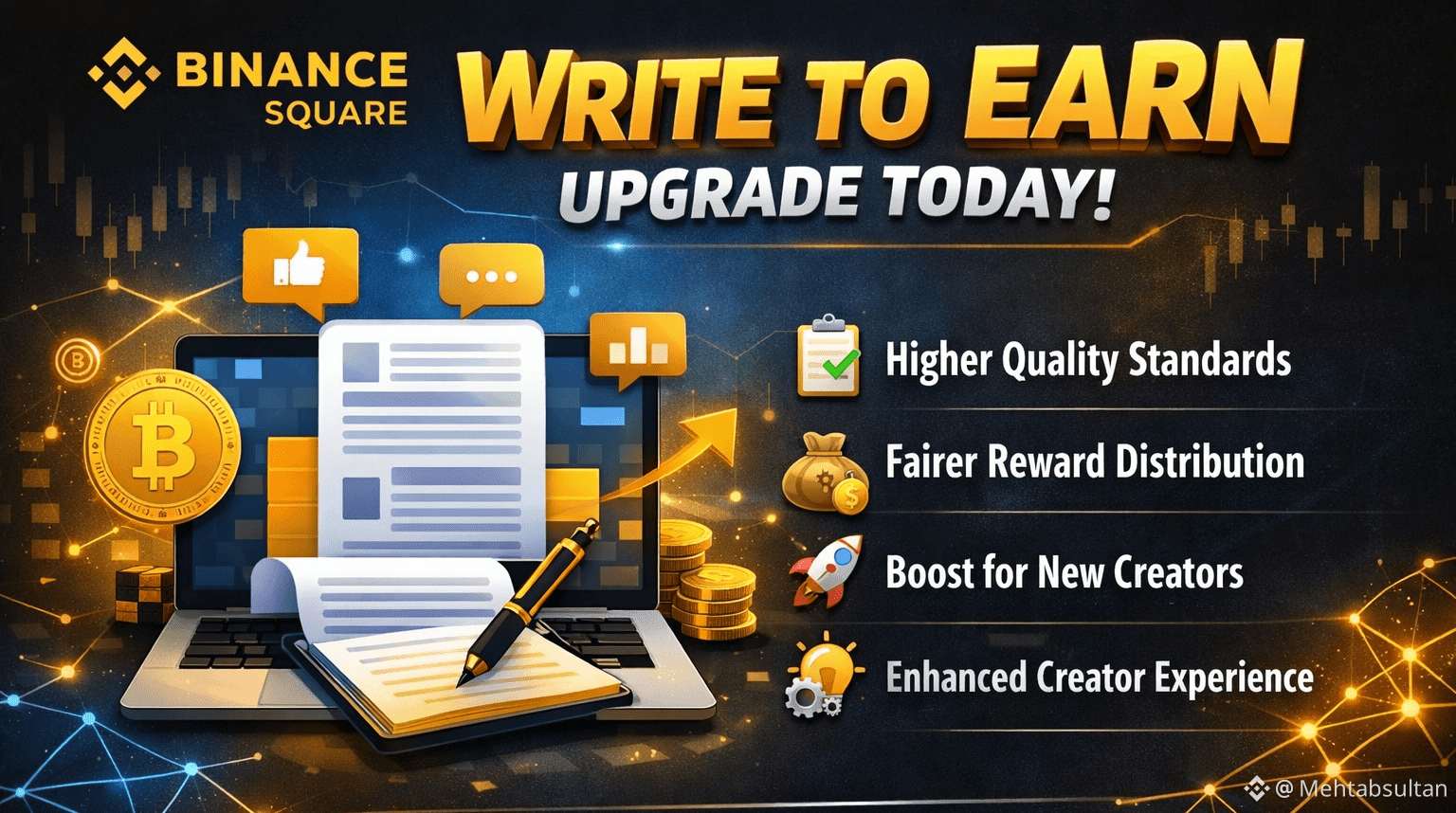 Binance Square ha introdotto un aggiornamento di Write to Earn, rafforzando il suo impegno a premiare i creatori di contenuti crypto di alta qualità. Questo aggiornamento è progettato per migliorare la trasparenza, la qualità dei contenuti e la distribuzione equa delle ricompense, ampliando le opportunità di guadagno per gli scrittori.