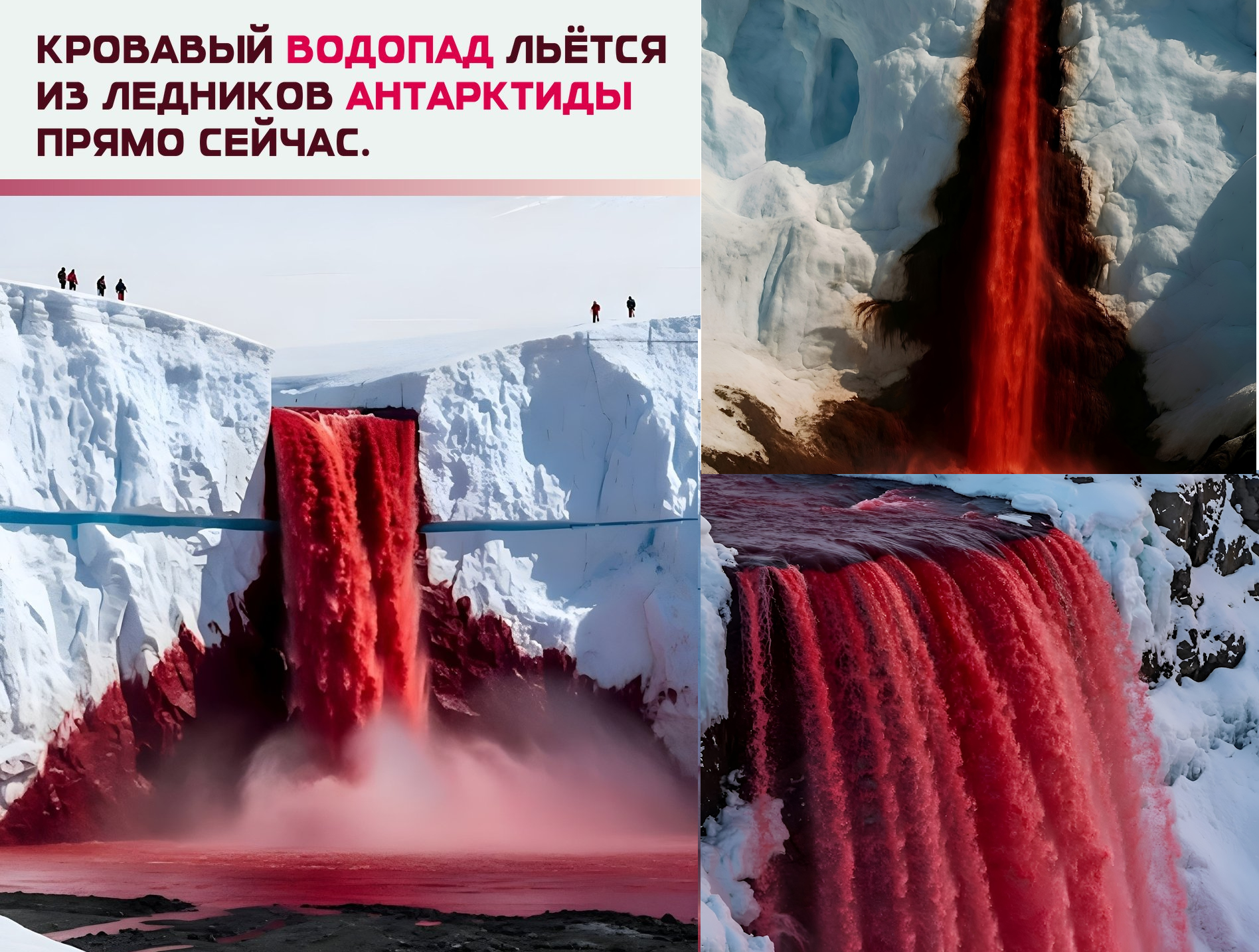 Antartide. -50 gradi. Il ghiacciaio Taylor. E improvvisamente — sangue. Acqua letteralmente rossa come il sangue, come da una ferita del pianeta. Non è una cascata comune. È una finestra su un mondo sotterraneo, che è stato chiuso per milioni di anni e non è mai stato riaperto.