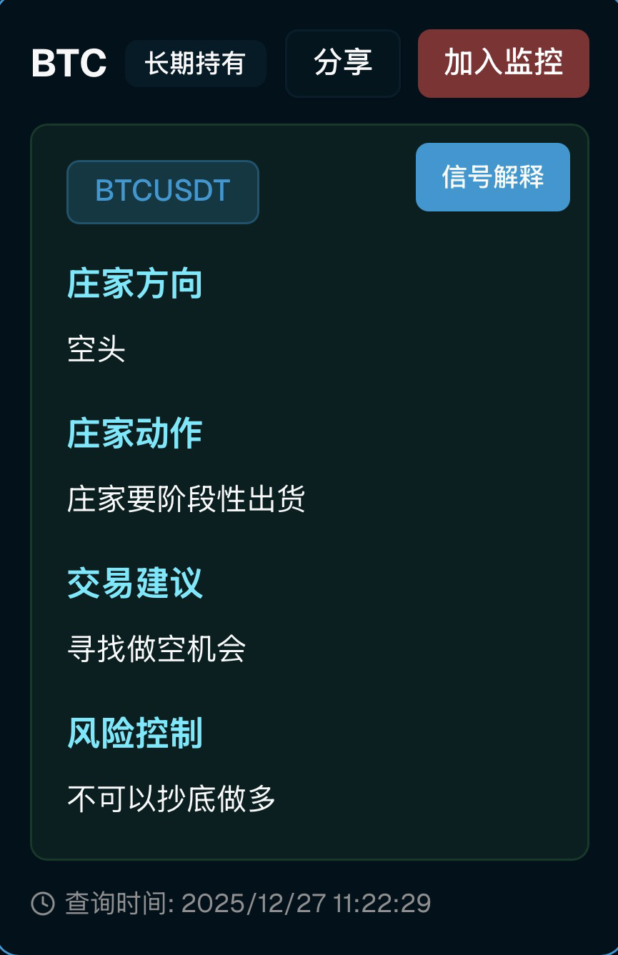 La strategia attuativa ti offre un piano praticabile: pensiero = aspetta solo un rimbalzo per andare short, non inseguire il ribasso; posizione = aspetta che il prezzo torni nella zona di resistenza chiave / vicino ai massimi precedenti per cercare segnali di debolezza (riduzione del volume, ombre superiori, ritracciamento dopo un picco) e entra in più fasi; stop loss = posiziona sopra il picco di "allungo per attrarre acquisti" / un po' sopra la zona di resistenza, non resistere; take profit = guarda prima un ritracciamento nella zona di partenza precedente / supporto di ritracciamento, chiudi metà, il resto segui il take profit; posizione = piccola posizione + basso leverage, non entrare quando il punteggio di rischio è 0; chi detiene spot a lungo termine può utilizzare piccole posizioni short per coprire il rischio di ritracciamento, ma non considerare la copertura come speculazione per aumentare la posizione. Ultima frase: il "contrasto centrale" di oggi è - accumulo di posizioni long dai giganti ≠ aumento sicuro, l'uscita short del mercato e il punteggio di rischio a 0 sono la melodia principale a breve termine, seguire la disciplina e aspettare un ritracciamento, andare short è più conveniente.
