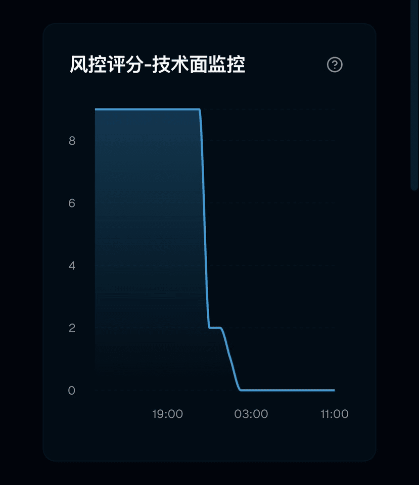 ② L'immagine del punteggio di rischio è ancor più severa: la prima metà è ancora a livelli elevati, poi scende in picchiata a 2 e poi a 0 e si stabilizza, indicando che il rischio tecnico si sta amplificando, la coerenza della tendenza sta peggiorando, il mercato sembra più una struttura di "alzare per un po', schiacciare per un po'", seguire long significa dare carburante alla volatilità.