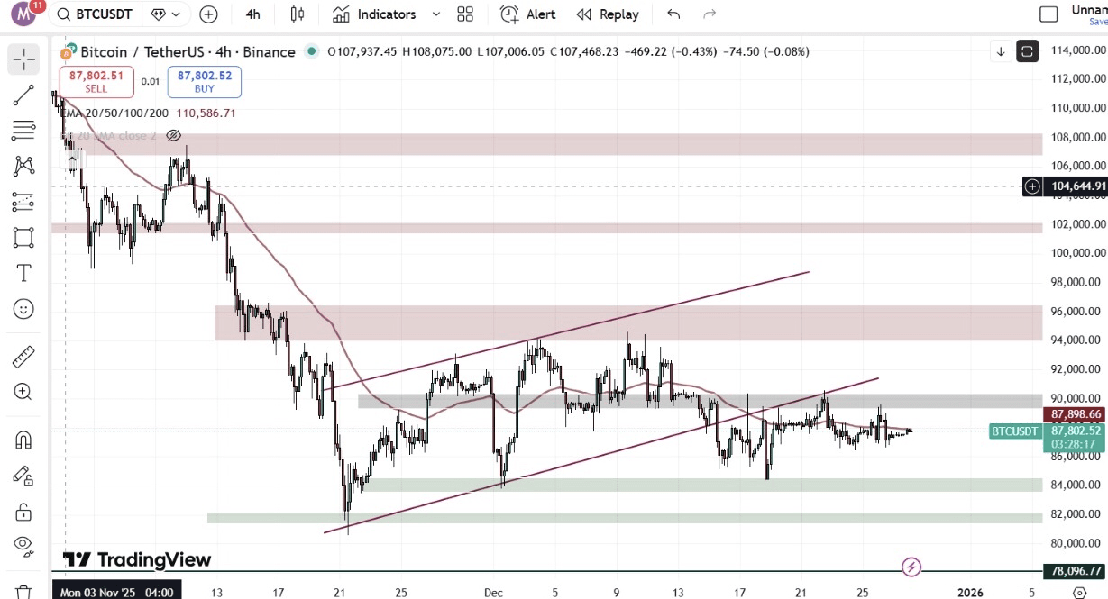 ➡️ Il bias rimane ribassista a meno che il prezzo non superi e non tenga sopra i 91k