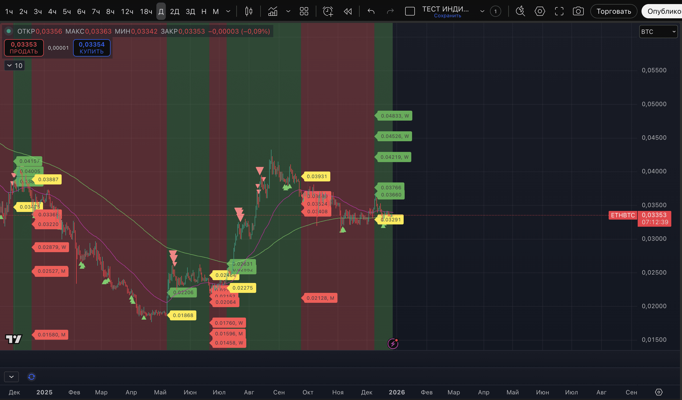 Inoltre, secondo il nostro indicatore P73 Smart Liquidity Zones (che mostra livelli orizzontali e livelli secondo le strutture delle candele) il prezzo ora si trova sopra il supporto chiave - 0,03284 BTC. All'inizio di agosto il prezzo ha rotto questo livello come resistenza, nella seconda metà di agosto ha toccato un massimo impulsivo e ora è tornato a testare questo livello come supporto. Rottura e retest della rottura.