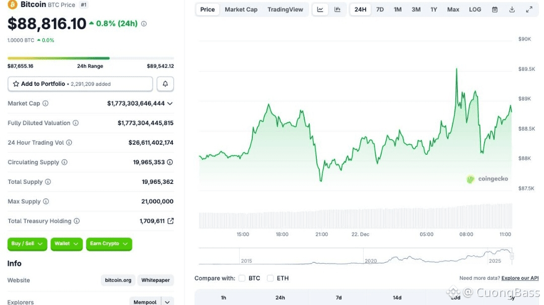 Bitcoin attualmente scambia intorno a 88.816 USD, con un leggero aumento dello 0,8% nelle ultime 24 ore. Tuttavia, questo rimbalzo a breve termine non è sufficiente a cambiare il quadro generale, poiché i dati on-chain, i derivati e i flussi di capitale istituzionali stanno lanciando segnali di cautela.