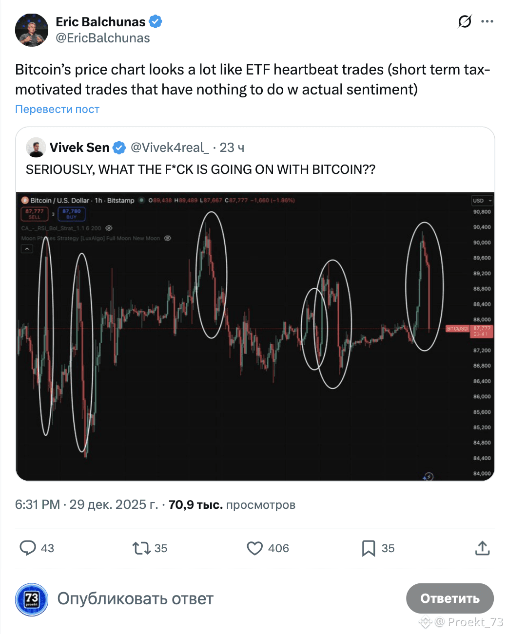 "Памп и дамп" у BTC во второй половине декабря - это результат налоговой оптимизации инвесторов США. Такое мнение высказал старший ETF-аналитик #Bloomberg Эрик Балчунас.